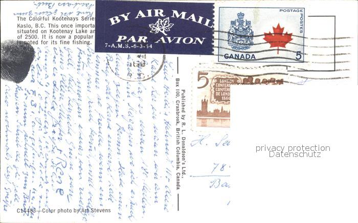 old postcard Kaslo British Columbia Kaslo BC Kootenay Lake postalisch gelaufen Erhaltung siehe scans