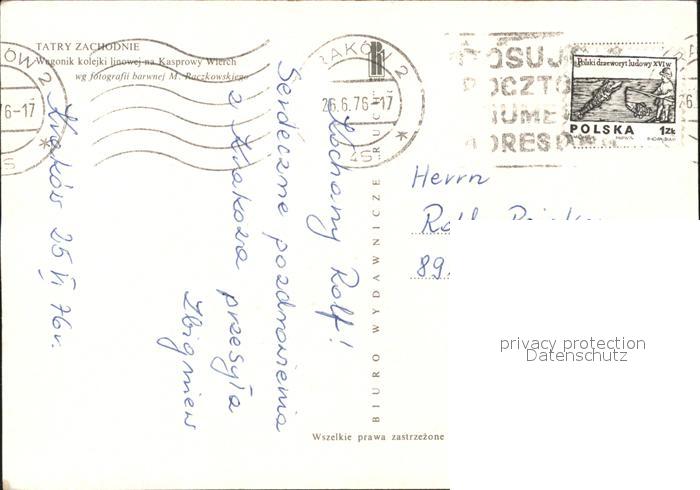 old postcard Kasprowy Wagonik kolejki linowej na Kasprowy Wierch Tatry Zachodnie Bergbahn postalisch gelaufen Erhaltung siehe scans