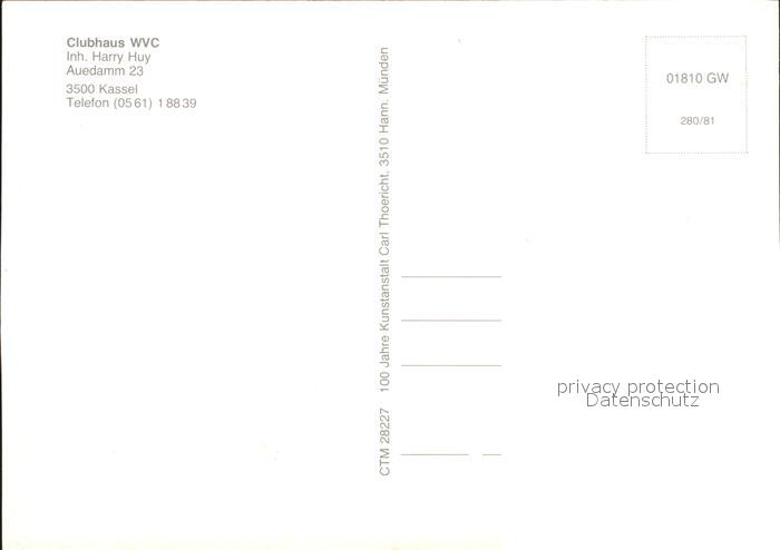 72240151 alte Postkarte KAssEL CITY Clubhaus WVC Schloss Park postalisch gelaufen Erhaltung siehe scans KatCode: 11110006611000