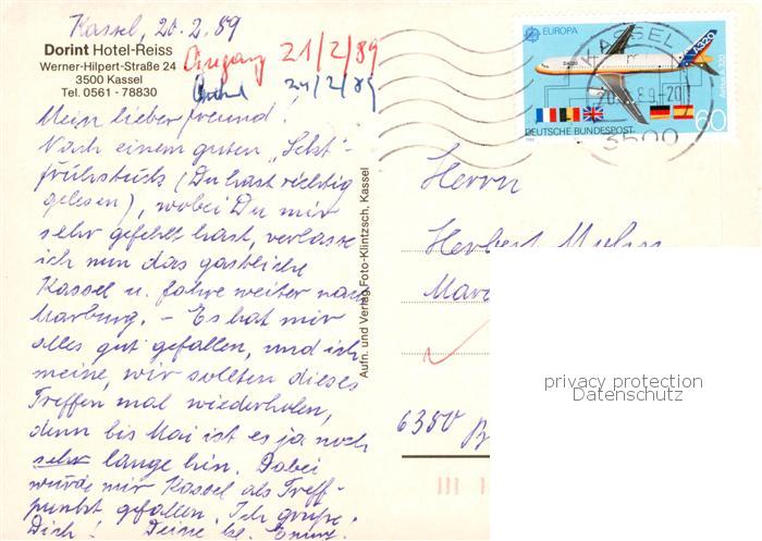 73846626 KAssEL CITY Dorint Hotel Reiss postalisch gelaufen Erhaltung siehe scans [WerneD78] alte Postkarte Wern Katcode 11110006611000