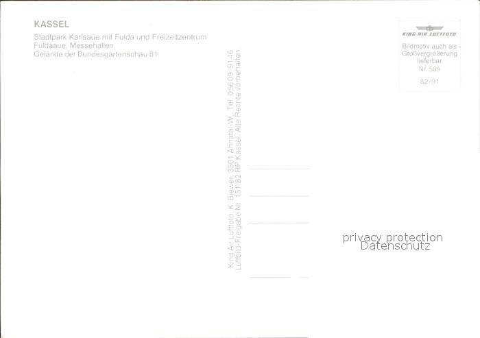 72001884 KAssEL CITY Fliegeraufnahme Stadtpark Karlsaue Fulda Freizeitzentrum Fuldaaue Messehallen postalisch nicht gelaufen Erhaltung siehe scans KatCode: 11110006611000