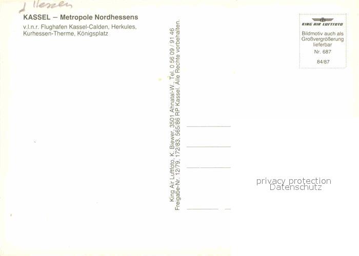 72916959 KAssEL CITY Flughafen Kassel Calden Herkules Kurhessentherme Koenigsplatz Fliegeraufnahme postalisch nicht gelaufen Erhaltung siehe scans [FriedD77] KatCode: 11110006611000