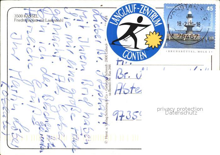 72570550 alte Postkarte KAssEL CITY Friedrichsplatz mit Laserstrahl postalisch gelaufen Erhaltung siehe scans [AndreD76] KatCode: 11110006611000