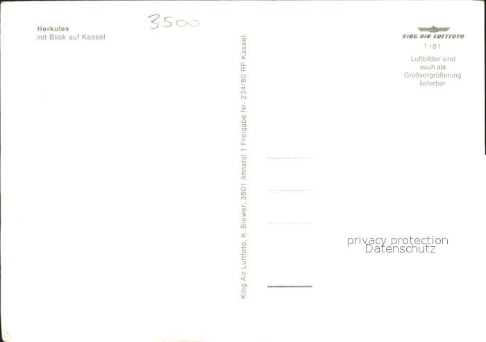71847685 KAssEL CITY Herkules Fliegeraufnahme postalisch nicht gelaufen Erhaltung siehe scans KatCode: 11110006611000