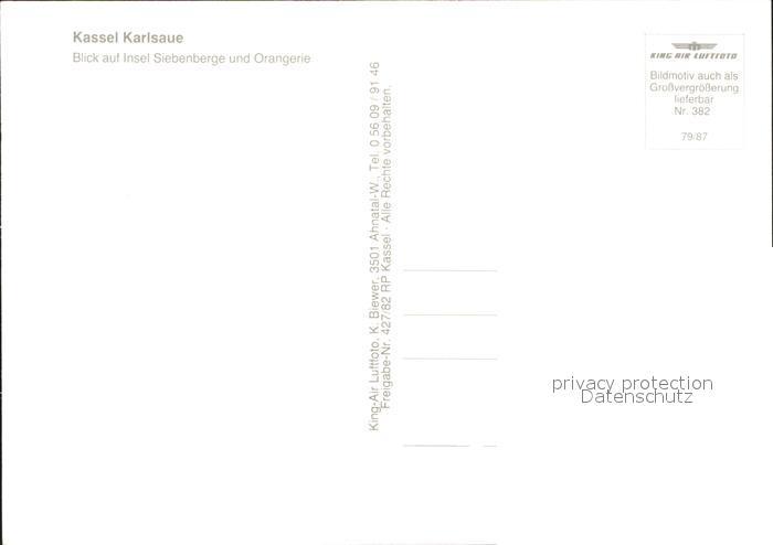 71913431 KAssEL CITY Karlsaue Blick auf Insel Siebenberge und Orangerie Fliegeraufnahme postalisch nicht gelaufen Erhaltung siehe scans KatCode: 11110006611000