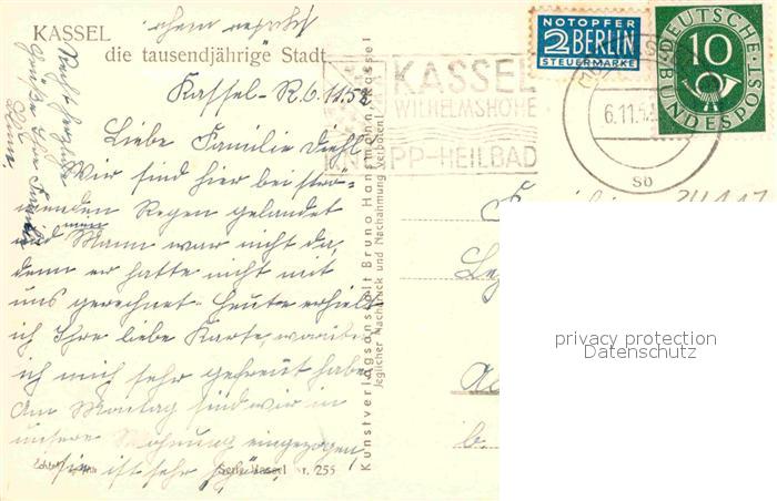 72890391 alte Postkarte KAssEL CITY Koenigsplatz Kirche 1000jaehrige Stadt postalisch gelaufen Erhaltung siehe scans [FriedD77] KatCode: 11110006611000