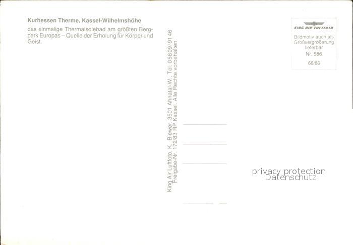 72494408 KAssEL CITY Kurhessen Therme Wilhelmshoehe postalisch nicht gelaufen Erhaltung siehe scans KatCode: 11110006611000