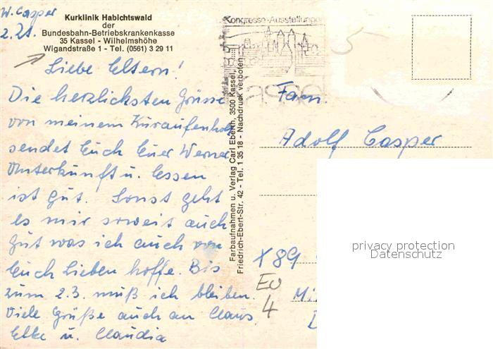 72905561 alte Postkarte KAssEL CITY Kurklinik Habichtswald postalisch gelaufen Erhaltung siehe scans [LiesaD40] KatCode: 11110006611000