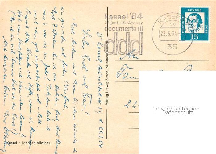 72956007 alte Postkarte KAssEL CITY Landesbibliothek postalisch gelaufen Erhaltung siehe scans [PaolaD17] KatCode: 11110006611000