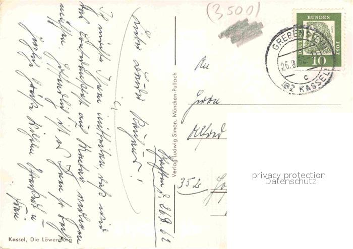 72901260 alte Postkarte KAssEL CITY Loewenburg postalisch gelaufen Erhaltung siehe scans [PaolaD17] KatCode: 11110006611000
