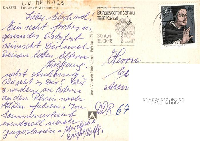 73019380 alte Postkarte KAssEL CITY Lustschloss Wilhelmsthal postalisch gelaufen Erhaltung siehe scans [NatalD47] KatCode: 11110006611000