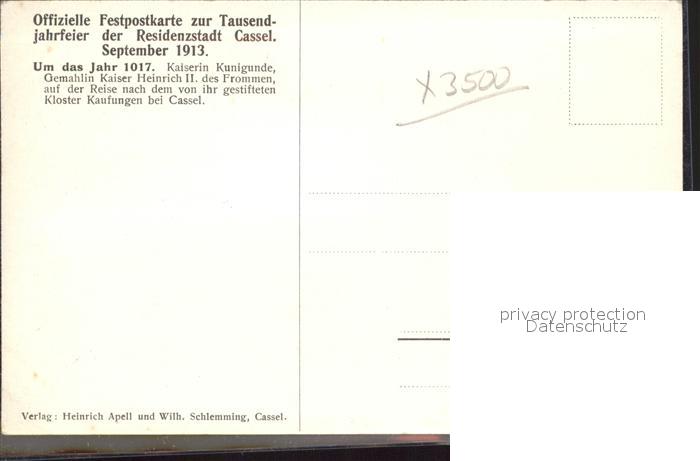 42155842 KAssEL CITY Offizielle Festpostkarte zur Tausendjahrfeier 1913 postalisch nicht gelaufen Erhaltung siehe scans KatCode: 11110006611000