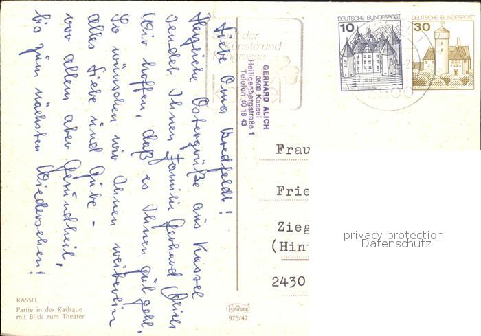 72573564 alte Postkarte KAssEL CITY Partie in der Karlsaue Theater postalisch gelaufen Erhaltung siehe scans [KathaD79] KatCode: 11110006611000