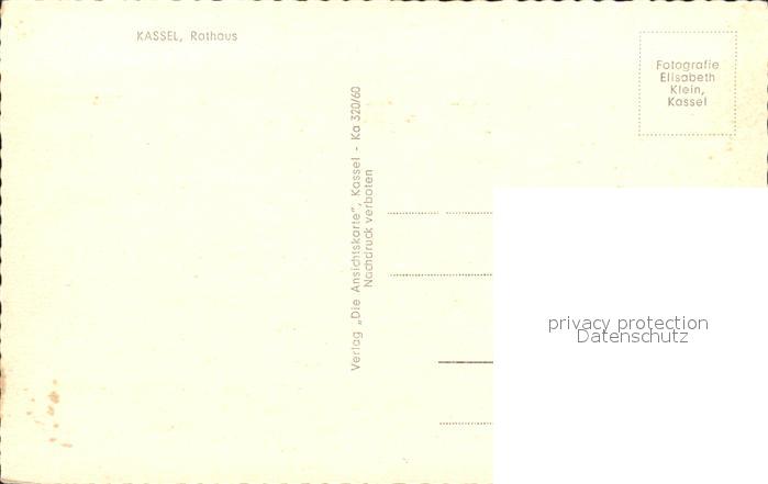 72374908 KAssEL CITY Rathaus postalisch nicht gelaufen Erhaltung siehe scans KatCode: 11110006611000