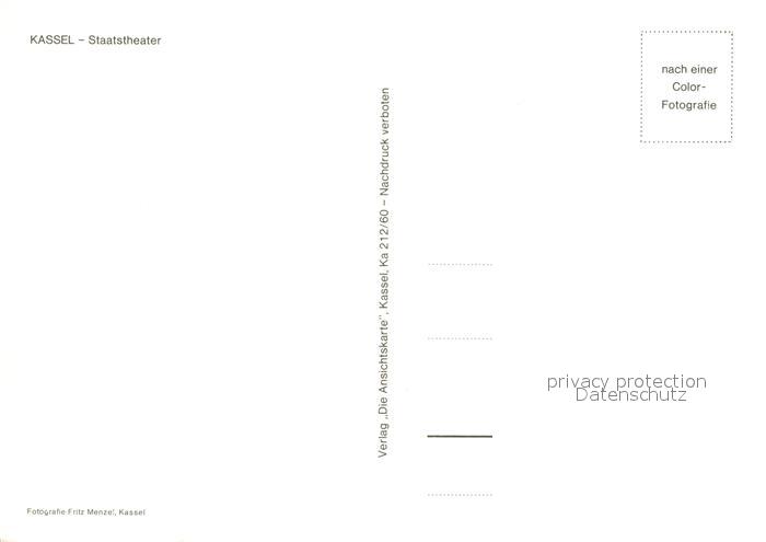 72948533 KAssEL CITY Staatstheater postalisch nicht gelaufen Erhaltung siehe scans [KathaD81] KatCode: 11110006611000