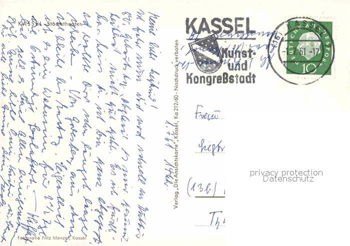 72782840 alte Postkarte KAssEL CITY Staatstheater postalisch gelaufen Erhaltung siehe scans [WerneD78] KatCode: 11110006611000
