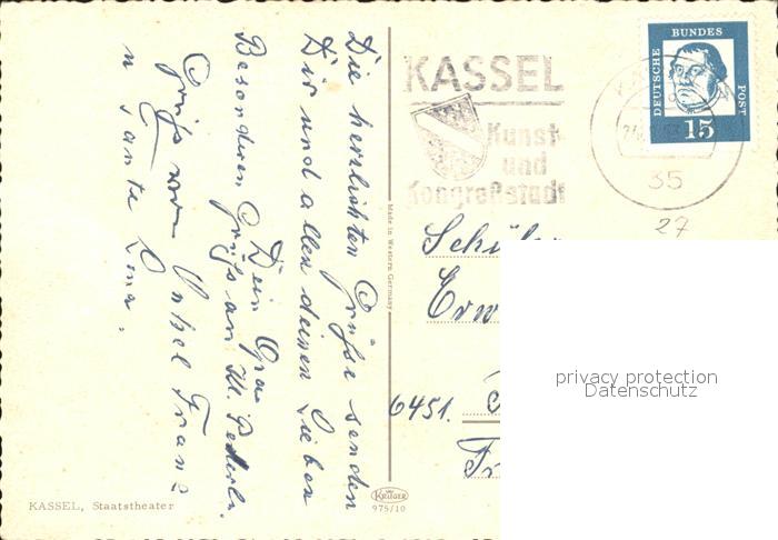 72157104 alte Postkarte KAssEL CITY Staatstheater postalisch gelaufen Erhaltung siehe scans KatCode: 11110006611000