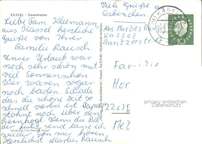 71941926 alte Postkarte KAssEL CITY Staatstheater Brunnen postalisch gelaufen Erhaltung siehe scans KatCode: 11110006611000