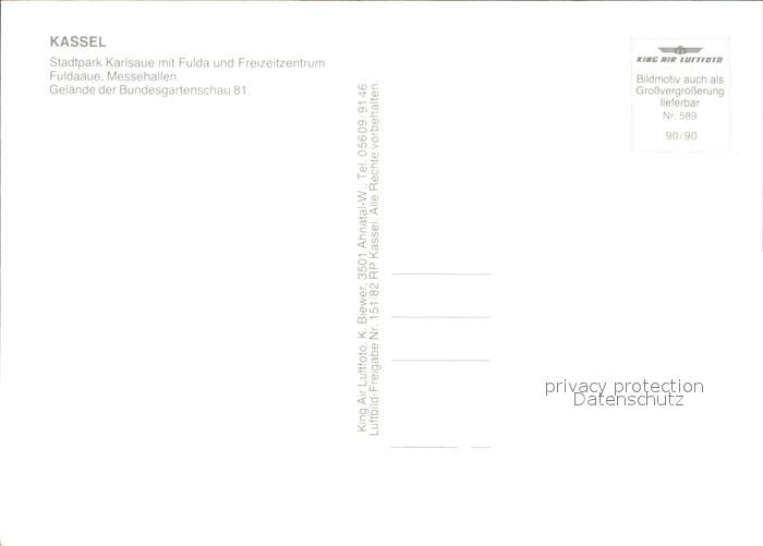 72550338 KAssEL CITY Stadtpark Karlsaue Fulda Freizeitzentrum Luftbild postalisch nicht gelaufen Erhaltung siehe scans [KathaD79] KatCode: 11110006611000