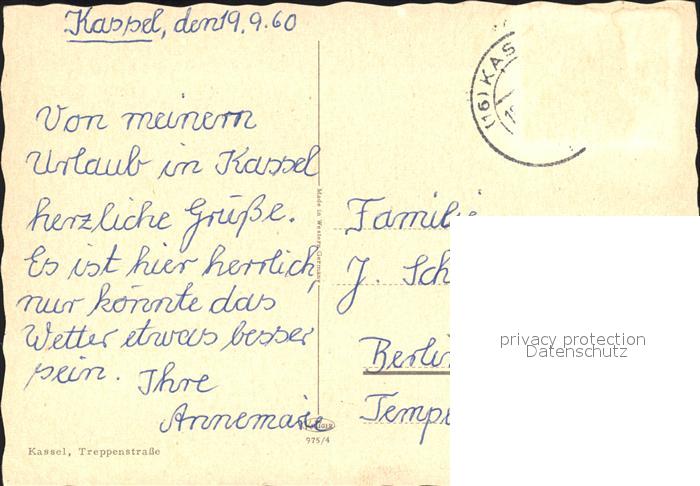 72227452 alte Postkarte KAssEL CITY Treppenstrasse postalisch gelaufen Erhaltung siehe scans KatCode: 11110006611000