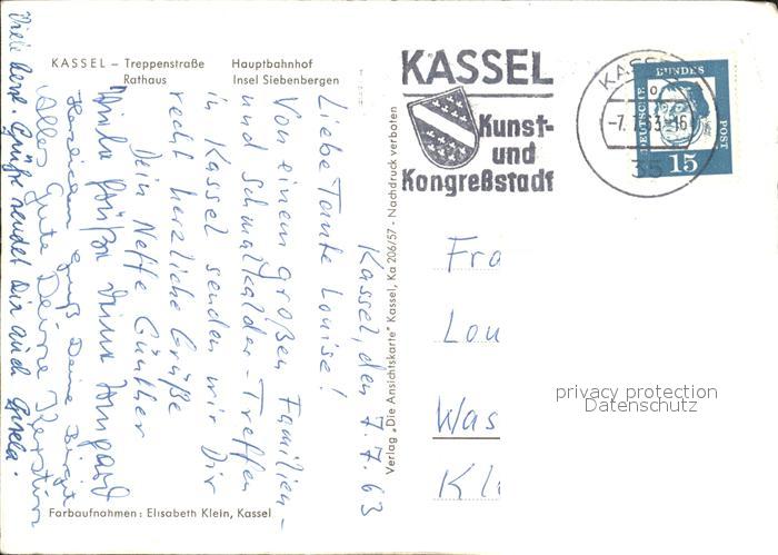72182414 alte Postkarte KAssEL CITY Treppenstrasse Rathaus Hauptbahnhof Insel Siebenbergen postalisch gelaufen Erhaltung siehe scans KatCode: 11110006611000