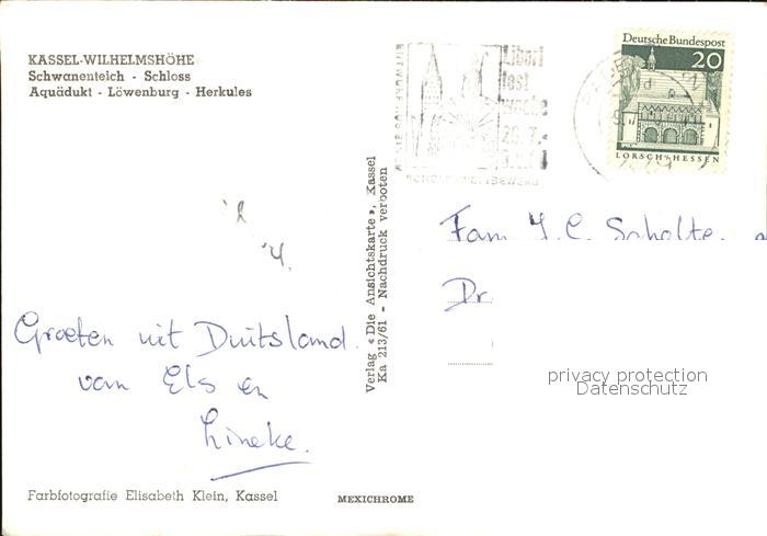 72412409 alte Postkarte KAssEL CITY Wilhelmshoehe Schwanenteich Schloss Aquaedukt Loewenburg Herkules postalisch gelaufen Erhaltung siehe scans KatCode: 11110006611000