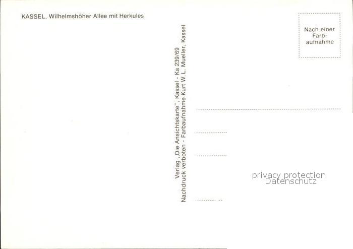 72349151 KAssEL CITY Wilhelmshoeher Allee Herkules postalisch nicht gelaufen Erhaltung siehe scans KatCode: 11110006611000