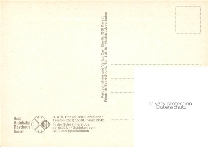 73295054 Kassel Hotel Autobahn Rasthaus Kutsche postalisch nicht gelaufen Erhaltung siehe scans [WerneD78] KatCode: 11110006611000