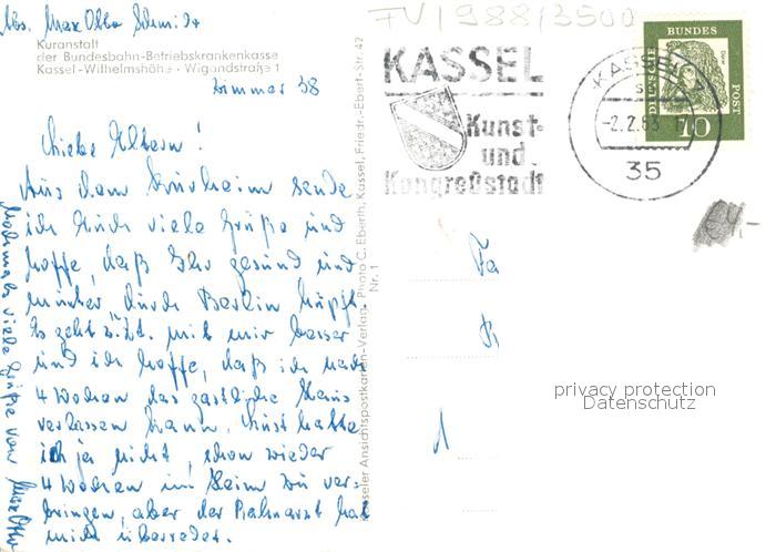 73163503 alte Postkarte Kassel Kuranstalt der Bundesbahn Betriebskrankenkasse postalisch gelaufen Erhaltung siehe scans [WerneD78] KatCode: 11110006611000