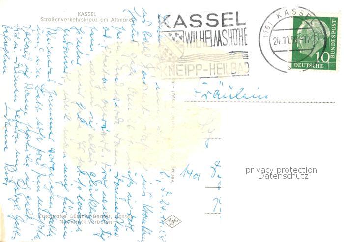33342538 alte Postkarte Kassel Strassenkreuzung am Altmarkt postalisch gelaufen Erhaltung siehe scans [WerneD78] KatCode: 11110006611000