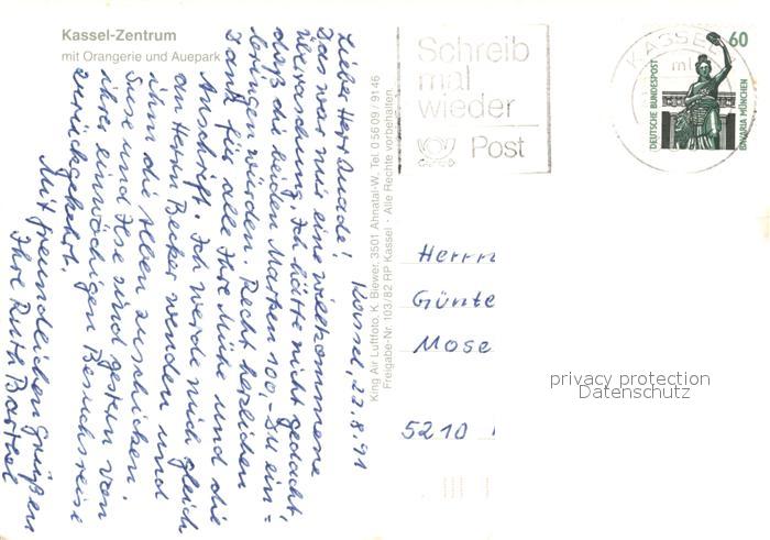 73319901 alte Postkarte Kassel Zentrum Orangerie Auepark Fliegeraufnahme postalisch gelaufen Erhaltung siehe scans [FriedD77] KatCode: 11110006611000
