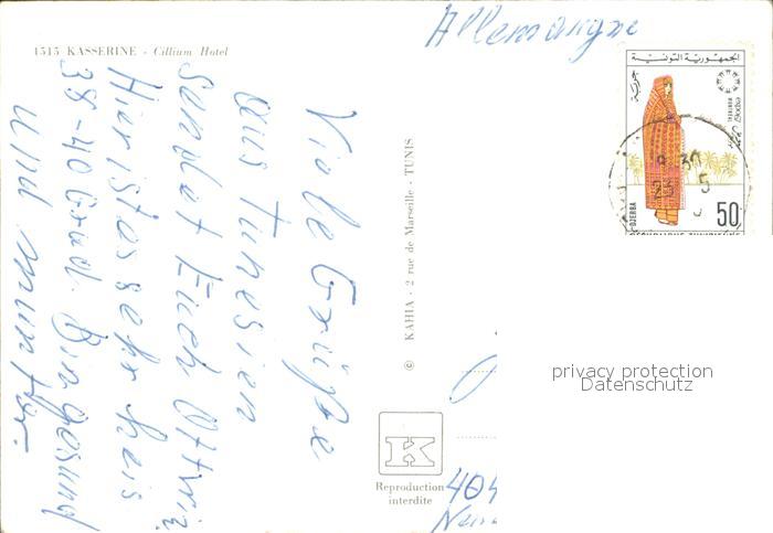 old postcard Kasserine Cillium Hotel postalisch gelaufen Erhaltung siehe scans