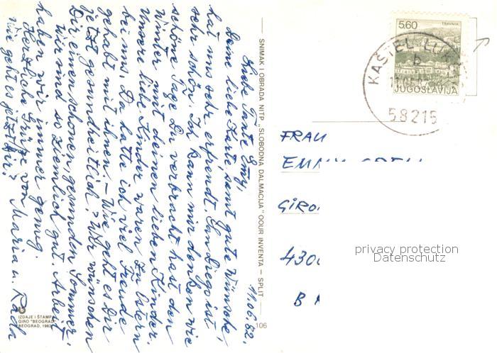 old postcard Kastel Luksic Croatia Hafen Promenade Panorama Luftbild postalisch gelaufen Erhaltung siehe scans [FriedD77]