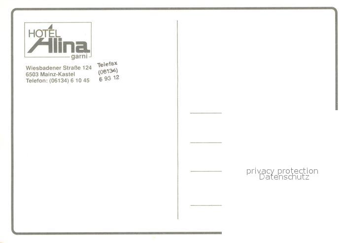 73686324 Kastel Mainz Hotel Alina Restaurant Fremdenzimmer postalisch nicht gelaufen Erhaltung siehe scans [FriedD77] KatCode: 11110007315000
