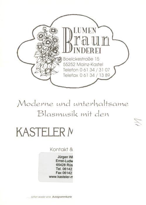 73875635 Kastel Mainz Kasteler Musikanten postalisch nicht gelaufen Werbekarte (keine Postkarte) Erhaltung siehe scans [WerneD78] KatCode: 11110007315000