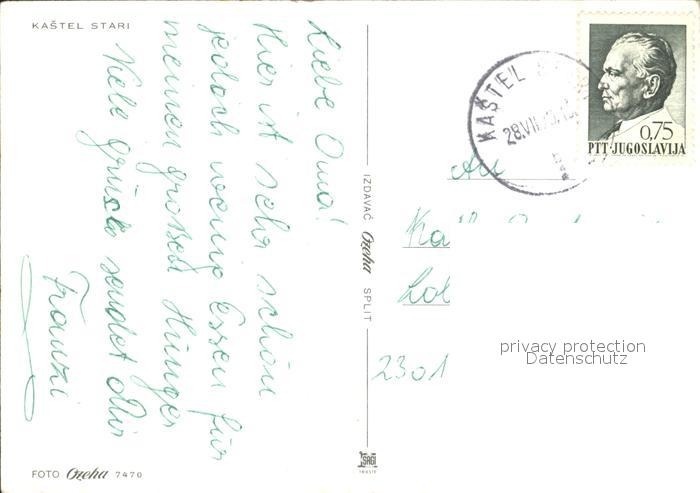 old postcard Kastela Fliegeraufnahme postalisch gelaufen Erhaltung siehe scans