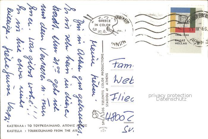 old postcard Kastella Tourkolimano Fliegeraufnahme postalisch gelaufen Erhaltung siehe scans [AndreD76]