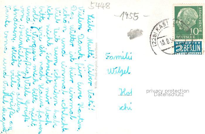 73696144 alte Postkarte Kastellaun Hunsrueck Burgruine und kath Kirche postalisch gelaufen Erhaltung siehe scans [WerneD78] KatCode: 11110007140064