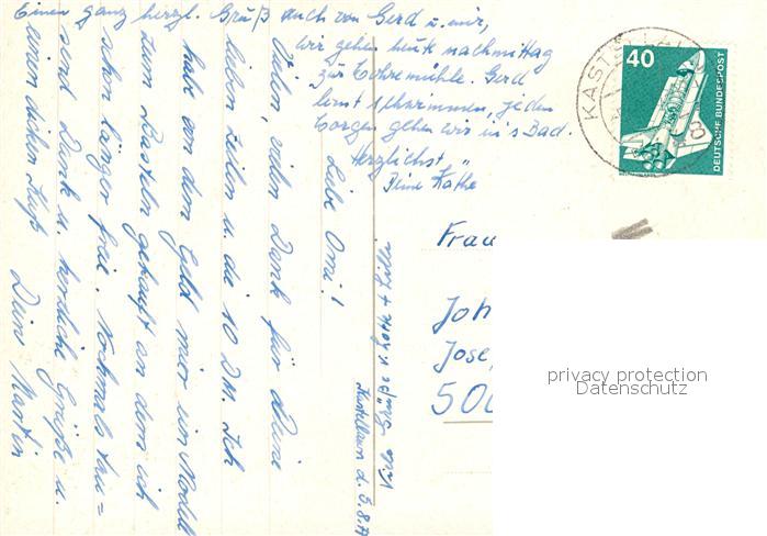 73230033 alte Postkarte Kastellaun Hunsrueck Chronik Kirche Burgruine postalisch gelaufen Erhaltung siehe scans [KathaD81] KatCode: 11110007140064
