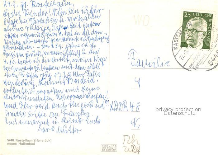 73608027 alte Postkarte Kastellaun Hunsrueck Neues Hallenbad postalisch gelaufen Erhaltung siehe scans [WerneD78] KatCode: 11110007140064