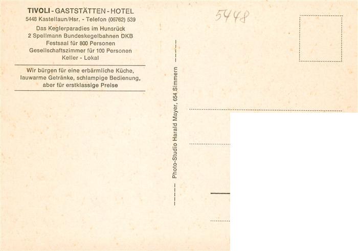 73890093 Kastellaun Hunsrueck Tivoli Gaststaetten Gastraeume postalisch nicht gelaufen Erhaltung siehe scans [WerneD78] KatCode: 11110007140064