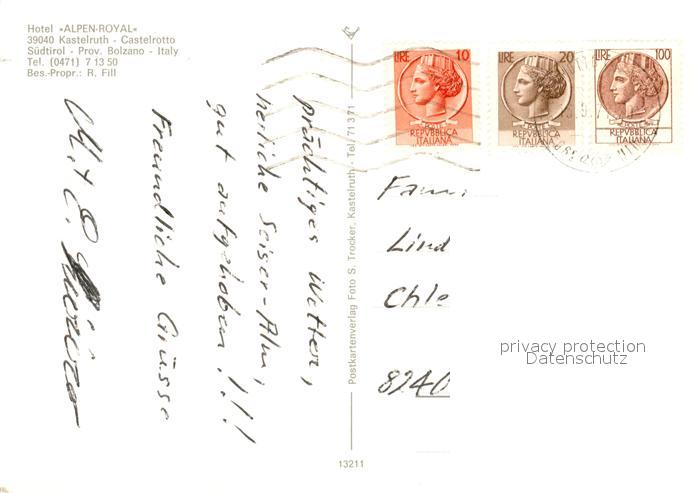 13235258 alte Postkarte Kastelruth Suedtirol Hotel Alpen Royal postalisch gelaufen Erhaltung siehe scans [FriedD77] KatCode: 11390