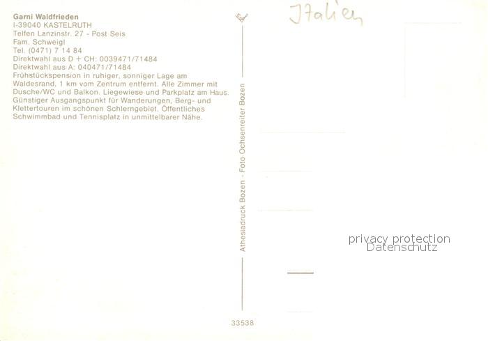 73339565 Kastelruth Suedtirol Hotel Garni Waldfrieden Restaurant Kamin Fremdenzimmer postalisch nicht gelaufen Erhaltung siehe scans [FriedD77] KatCode: 11390