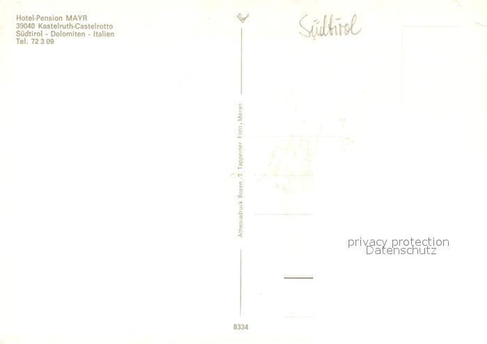 73165927 Kastelruth Suedtirol Hotel Pension Mayr Winterpanorama postalisch nicht gelaufen Erhaltung siehe scans [KathaD81] KatCode: 11390