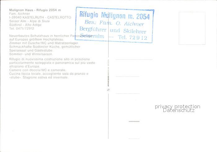 72500391 Kastelruth Suedtirol Molignon Haus Rifugio postalisch nicht gelaufen Erhaltung siehe scans KatCode: 11390