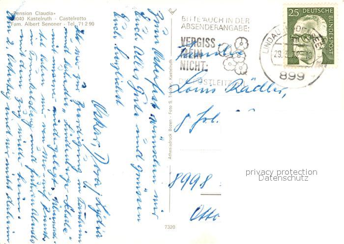 13339670 alte Postkarte Kastelruth Suedtirol Pension Claudia postalisch gelaufen Erhaltung siehe scans [WerneD78] KatCode: 11390