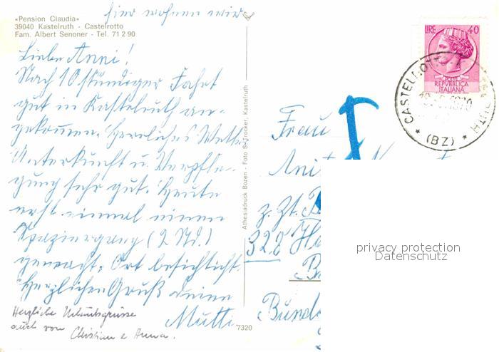 72849103 alte Postkarte Kastelruth Suedtirol Pension Claudia postalisch gelaufen Erhaltung siehe scans [AndreD76] KatCode: 11390