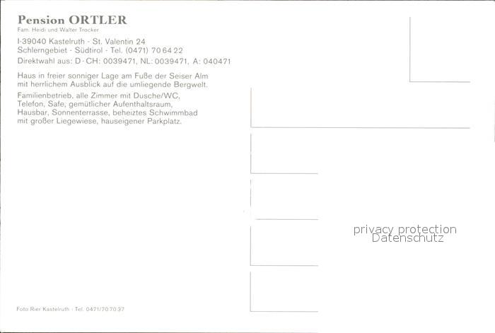 72493080 Kastelruth Suedtirol Pension Ortler postalisch nicht gelaufen Erhaltung siehe scans KatCode: 11390