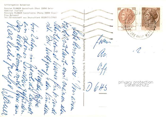 73056821 alte Postkarte Kastelruth Suedtirol Pension Plunger postalisch gelaufen Erhaltung siehe scans [WerneD78] KatCode: 11390