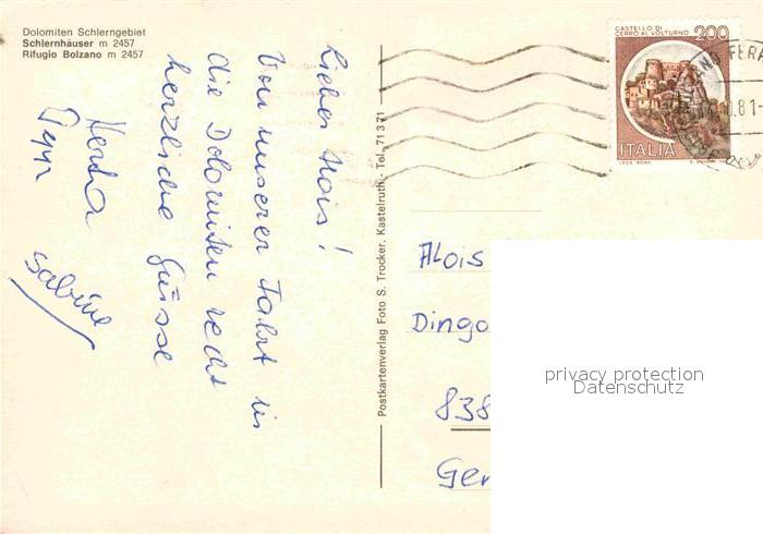 72692676 alte Postkarte Kastelruth Suedtirol Schlernhaeuser Rif Bolzano postalisch gelaufen Erhaltung siehe scans [NatalD47] KatCode: 11390